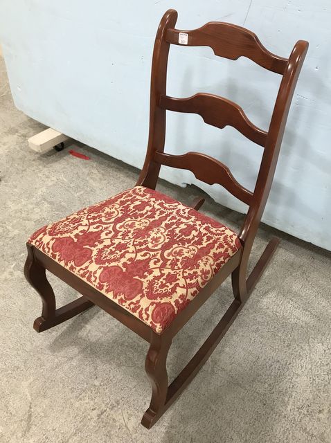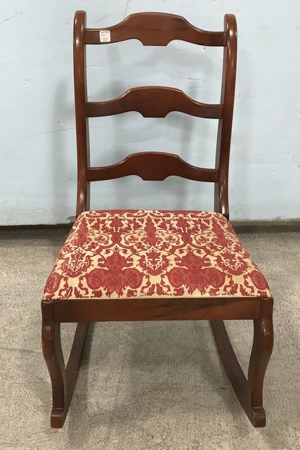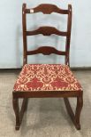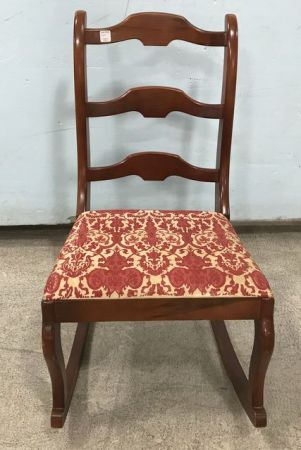 Small Vintage Sewing Rocker, mahogany, ladder back, fabric cushion, minor finish wear, 31"h. Small Vintage Sewing Rocker, mahogany, ladder back, fabric cushion, minor finish wear, 31"h.