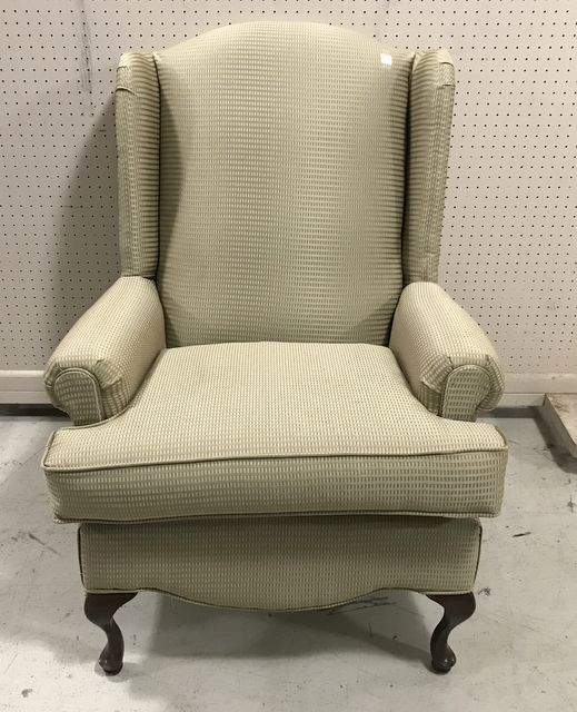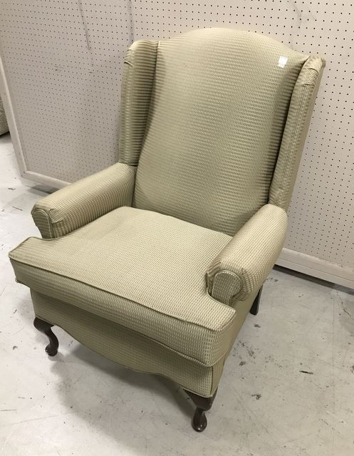 Upholstered Queen Anne Arm Chair, clean fabric, 40"h. Upholstered Queen Anne Arm Chair, clean fabric, 40"h.