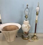 953 Glass Urn Style Lamp and Brass Pole Table Lamp