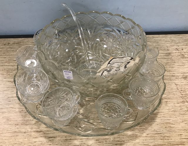 954 Vintage Pressed Glass Punch Bowl Set