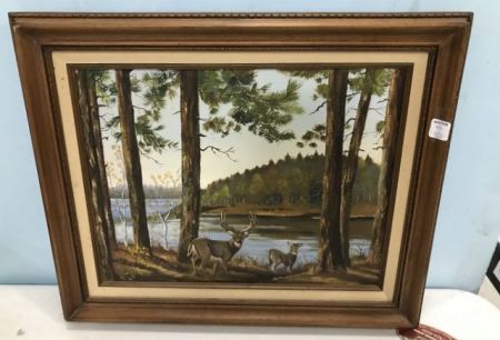 Oil Painting of Whitetail Deer by Linda Jackson 1986, framed 19"h., 23"w. Oil Painting of Whitetail Deer by Linda Jackson 1986, framed 19"h., 23"w.