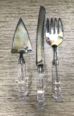 Glass Handled Carving Set, cake server, carving knife, fork. Glass Handled Carving Set, cake server, carving knife, fork.