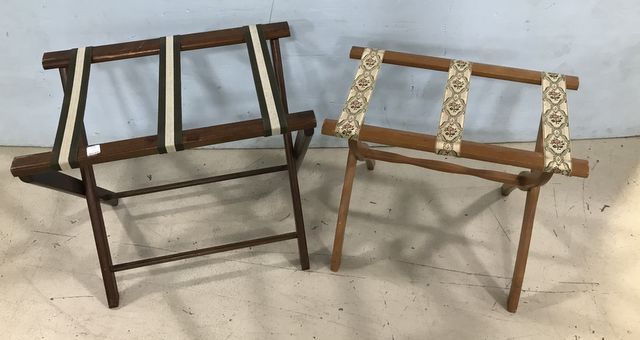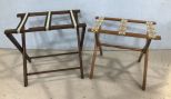 Two Luggage Racks/stands, three banded, maple and cherry. Two Luggage Racks/stands, three banded, maple and cherry.