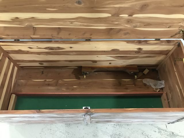 Vintage Hand Painted Cedar Trunk, lift top, needs some work, 20"h., 54"w., 21"d. Vintage Hand Painted Cedar Trunk, lift top, needs some work, 20"h., 54"w., 21"d.