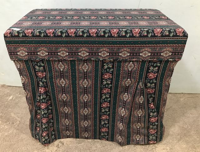 Upholstered Wood Frame Console Table, skirted, hand made frame, 31"h., 35"w., 20"d. Upholstered Wood Frame Console Table, skirted, hand made frame, 31"h., 35"w., 20"d.