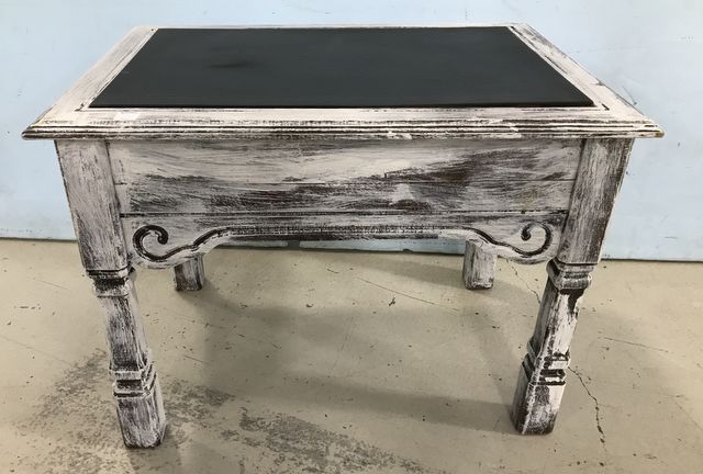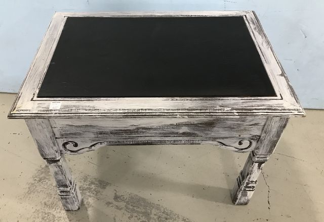 Painted White Lamp Table, vinyl top, 21"h., 28"w. Painted White Lamp Table, vinyl top, 21"h., 28"w.