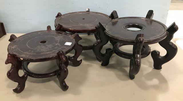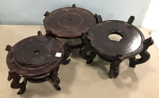 Three Large Oriental Style Vase Stands, needs cleaning, 7"h., 12"w. Three Large Oriental Style Vase Stands, needs cleaning, 7"h., 12"w.
