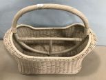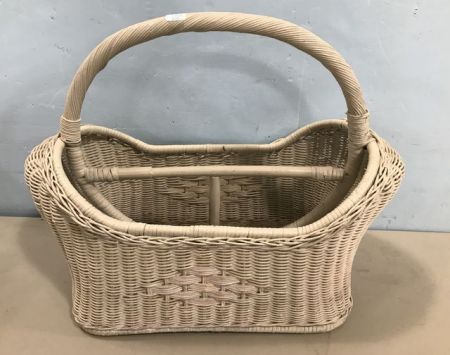 White Wicker Handled Magazine Basket, 17"h., 20"w. White Wicker Handled Magazine Basket, 17"h., 20"w.