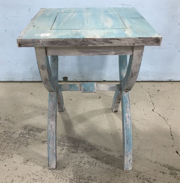 Painted small accent table, cross style legs, 21"h., 16"d. Painted small accent table, cross style legs, 21"h., 16"d.