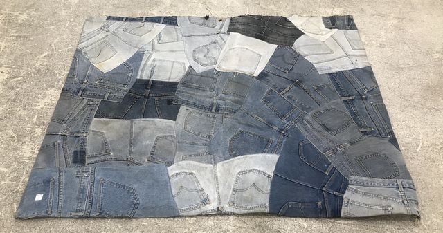 Modern blue jean area rug, is dirty, 4' x 6'. Modern blue jean area rug, is dirty, 4' x 6'.