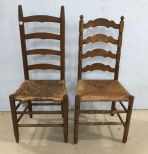 Two ladder back side chairs, woven seats, worn condition, 43"h. Two ladder back side chairs, woven seats, worn condition, 43"h.