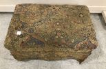 Upholstered Skirted Foot Stool, aged fabric, 14"h., 24"w. Upholstered Skirted Foot Stool, aged fabric, 14"h., 24"w.