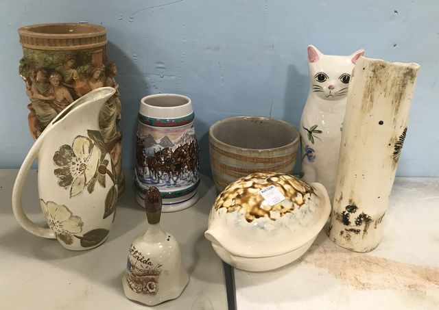 Grecian Style resin vase, shell dish, beer stein, pottery bowl, cat pottery, hand made pottery vase, pottery bell. Grecian Style resin vase, shell dish, beer stein, pottery bowl, cat pottery, hand made pottery vase, pottery bell.