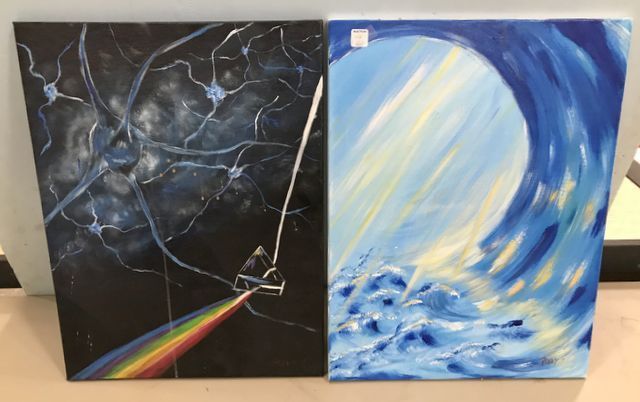 Two Painted Canvas signed Ronny, 24"h., 18"w. Two Painted Canvas signed Ronny, 24"h., 18"w.