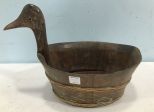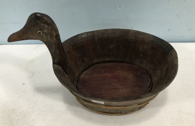Wood duck planter, carved feathers, string wrap, 10"h., 11"w. Wood duck planter, carved feathers, string wrap, 10"h., 11"w.