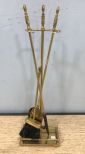 Fireplace tool set, brush, poker, shovel, stand, brass. Fireplace tool set, brush, poker, shovel, stand, brass.