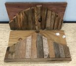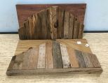 Two Home Made Wood Mountain Plaques, wood blocks with wood shape mountain decor, wall plaques, 10"h., 19"w. Two Home Made Wood Mountain Plaques, wood blocks with wood shape mountain decor, wall plaques, 10"h., 19"w.
