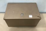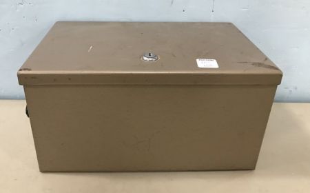 Rocraway Metal Lock Box, handled, has key, 6"h., 13"w., 8"d. Rocraway Metal Lock Box, handled, has key, 6"h., 13"w., 8"d.