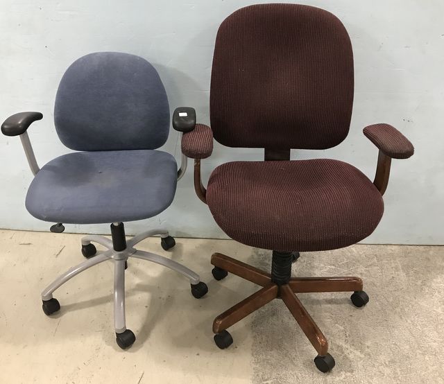 Two Rolling Office Desk Chairs, adjustable height, swivel, arms. Two Rolling Office Desk Chairs, adjustable height, swivel, arms.