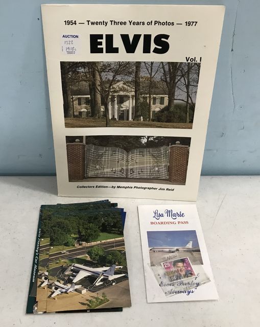 Graceland collectibles, booklet, board pass, Elvis stamp, post cards. Graceland collectibles, booklet, board pass, Elvis stamp, post cards.