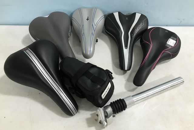 Five new bicycle seats, and seat rod. Five new bicycle seats, and seat rod.