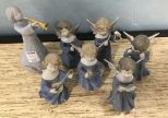 Hand Painted Glazed Angel Figurines, choir edition, 7 total pieces, 4"h. Hand Painted Glazed Angel Figurines, choir edition, 7 total pieces, 4"h.