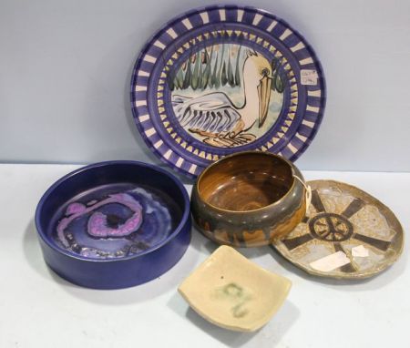 Consists of bear pottery bowl, pottery plate, pelican plate, pottery dish and Knabstrup bowl; Pelican- 12" dia. Consists of bear pottery bowl, pottery plate, pelican plate, pottery dish and Knabstrup bowl; Pelican- 12" dia.