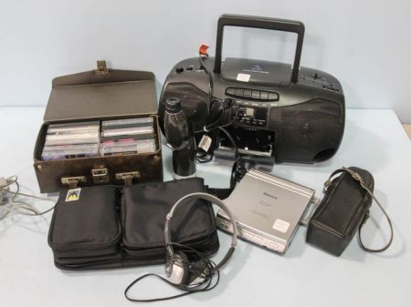 Including CD radio, Carton telescope, cassettes, portable DVD player and CD case Including CD radio, Carton telescope, cassettes, portable DVD player and CD case