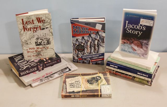 Including signed copy of Ark Fever by Robert Cornuke, signed copy of Jacob's Story by John Agliata, signed copy of Lest We Forget by Dan McCullen and signed copy of Meat Market by Bruce Feldman Including signed copy of Ark Fever by Robert Cornuke, signed copy of Jacob's Story by John Agliata, signed copy of Lest We Forget by Dan McCullen and signed copy of Meat Market by Bruce Feldman