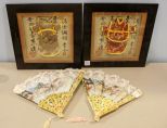 1153 Two Chinese Framed Doll Clothes & Two Decorative Chinese Fans