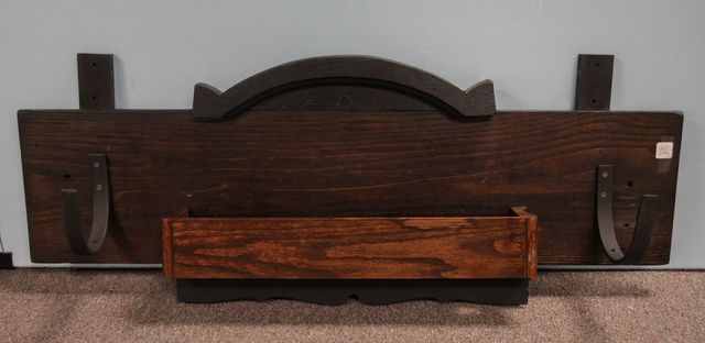 1233 Oak and Walnut Shelf with Wood Hooks and Holder