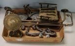 1214 Box of Brass Towel Bars, Ashtrays, Flower & Sleigh Bells