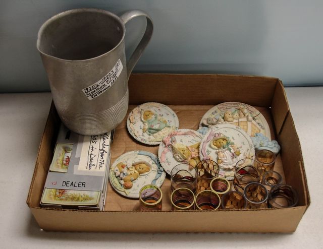 Includes aluminum pitcher, glass napkin rings, card holders and four bear plaques Includes aluminum pitcher, glass napkin rings, card holders and four bear plaques