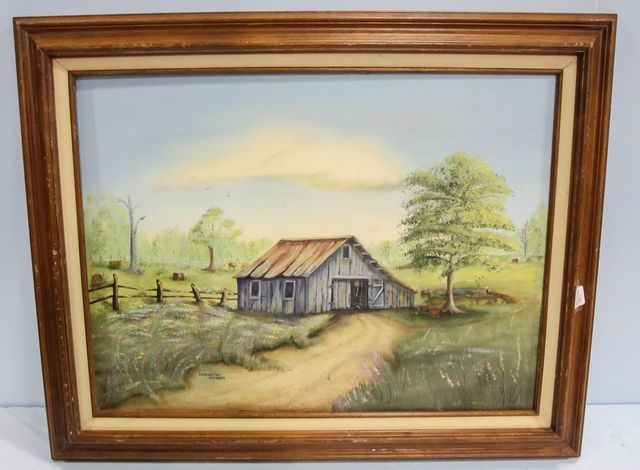 1319 Oil Painting of Barn Signed Ernestine Stringer