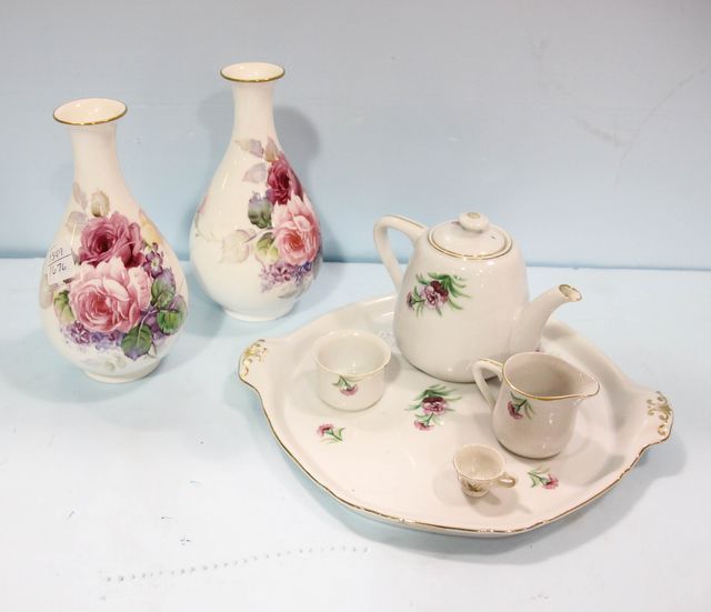1349 Pair of Noritake Painted Vases & Occupied Japan Tea Set