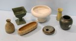Includes Stlyac English pottery rectangular pot, flower frog, royal hager vase, floraline vase, three pottery vases Includes Stlyac English pottery rectangular pot, flower frog, royal hager vase, floraline vase, three pottery vases
