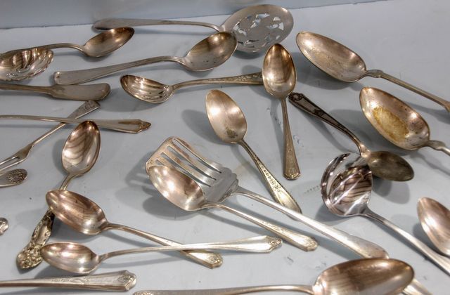 Includes tongs, tomato server, eight large serving spoons, other serving pieces, spoons, forks and ladle Includes tongs, tomato server, eight large serving spoons, other serving pieces, spoons, forks and ladle