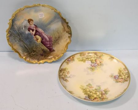 Large hand painted artist signed charger of lady with hat (repaired), 12" dia. and large imperial Austria charger (chips), 13" dia. Large hand painted artist signed charger of lady with hat (repaired), 12" dia. and large imperial Austria charger (chips), 13" dia.