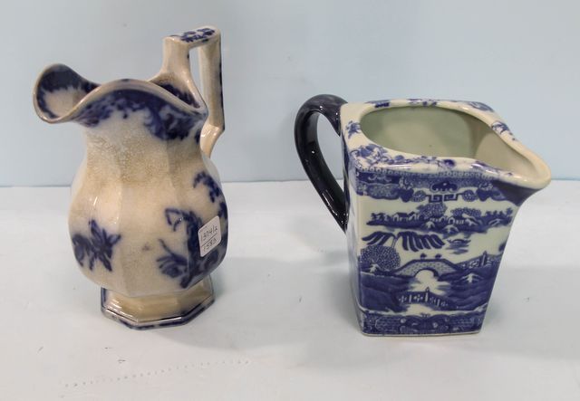 1394 Antique Flow Blue Pitcher & Victorian Ironstone Pitcher