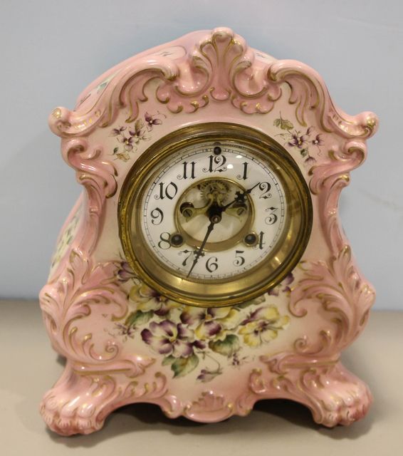 403 Waterbury Hand Painted Floral Mantel Clock