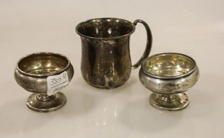 387 Two Sterling Master Salt Dips & Sterling Baby Cup