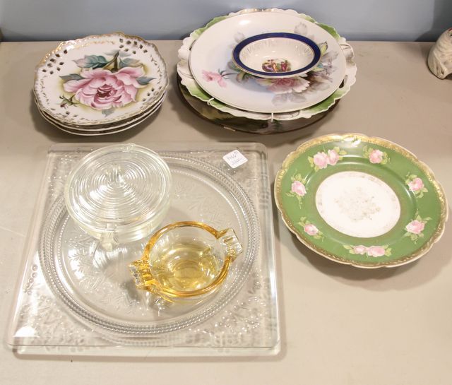 1466 Hand Painted Plated, Etched Tray, Bowl with Lid & Ashtray