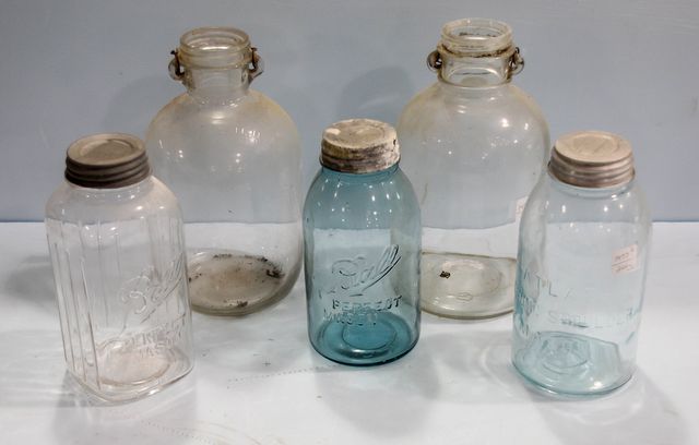 1477 Two One Gallon jars & Three Large Fruit Jars