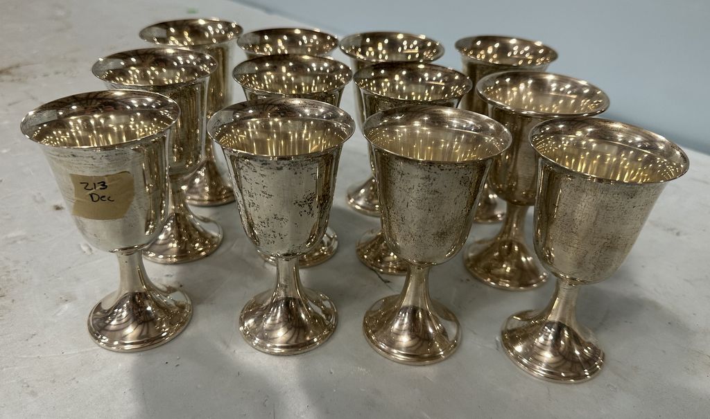 12 Newport Sterling 4.75" Goblets, 24.84 ozt, Location Case by Office 12 Newport Sterling 4.75" Goblets, 24.84 ozt, Location Case by Office
