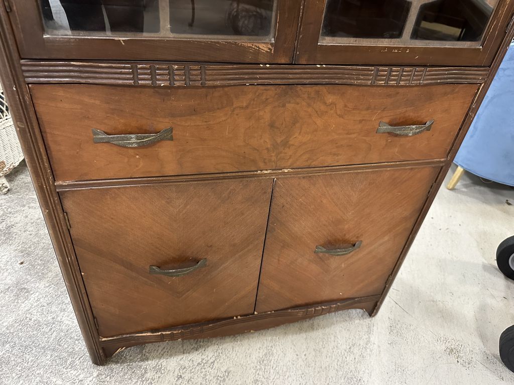 221 Depression Era Walnut China Cabinet