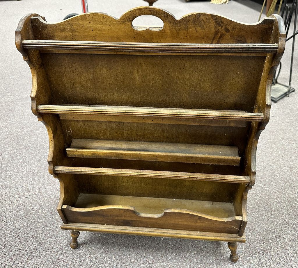 Vintage Canterbury Magazine Stand, 29"h., 22"w. Location Row 6 Vintage Canterbury Magazine Stand, 29"h., 22"w. Location Row 6