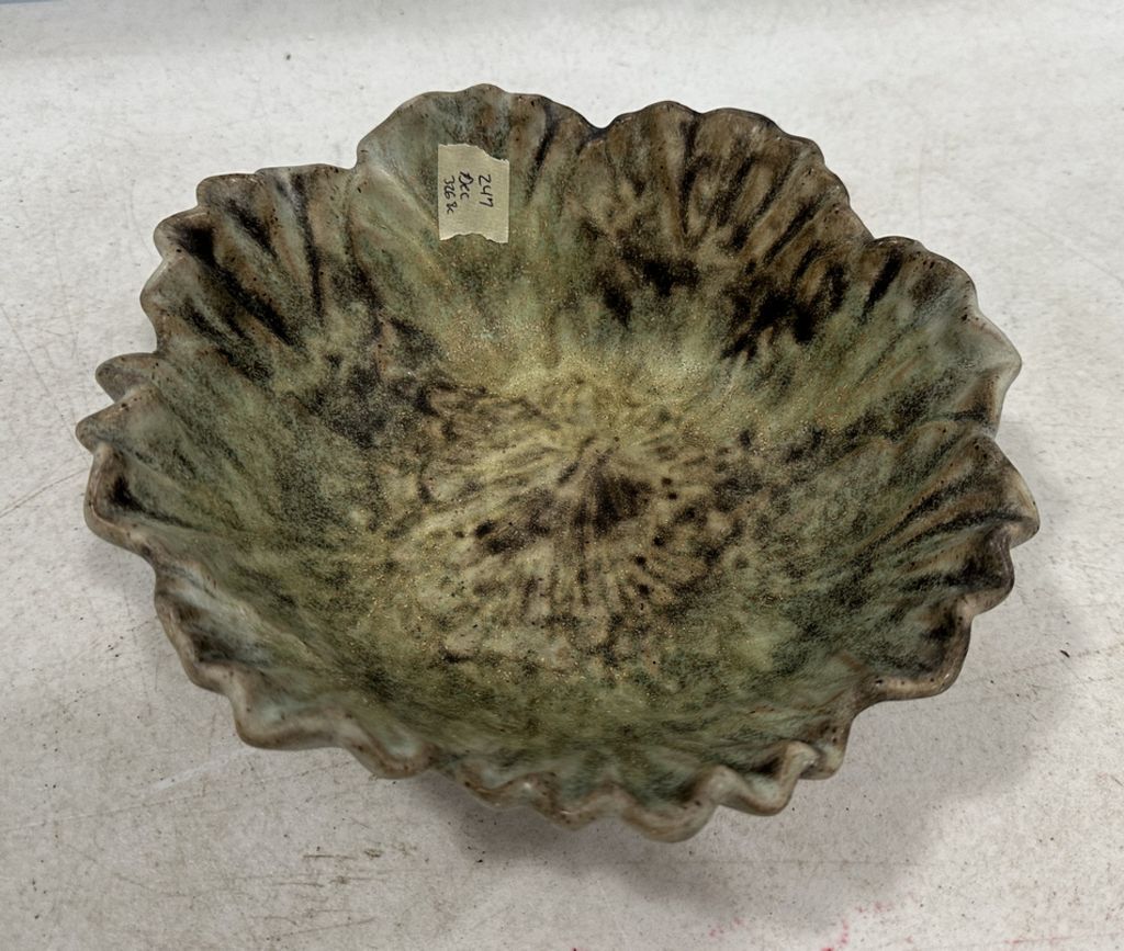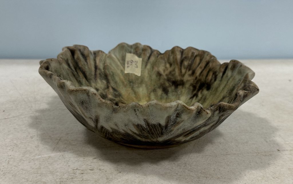 Vintage Peter's Pottery Leaf Bowl, signed, nutmeg, 9 1/2"dia, Location Front Left Shelves Vintage Peter's Pottery Leaf Bowl, signed, nutmeg, 9 1/2"dia, Location Front Left Shelves