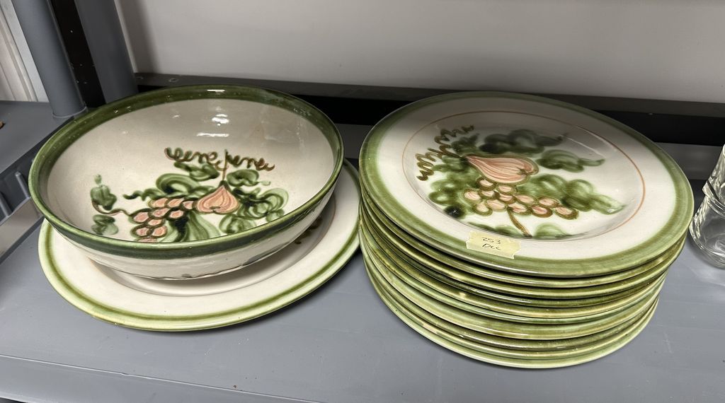 John B Taylor Ceramic Set, platter, bowls, and 10 dinner plates, Location Left Office 1 John B Taylor Ceramic Set, platter, bowls, and 10 dinner plates, Location Left Office 1