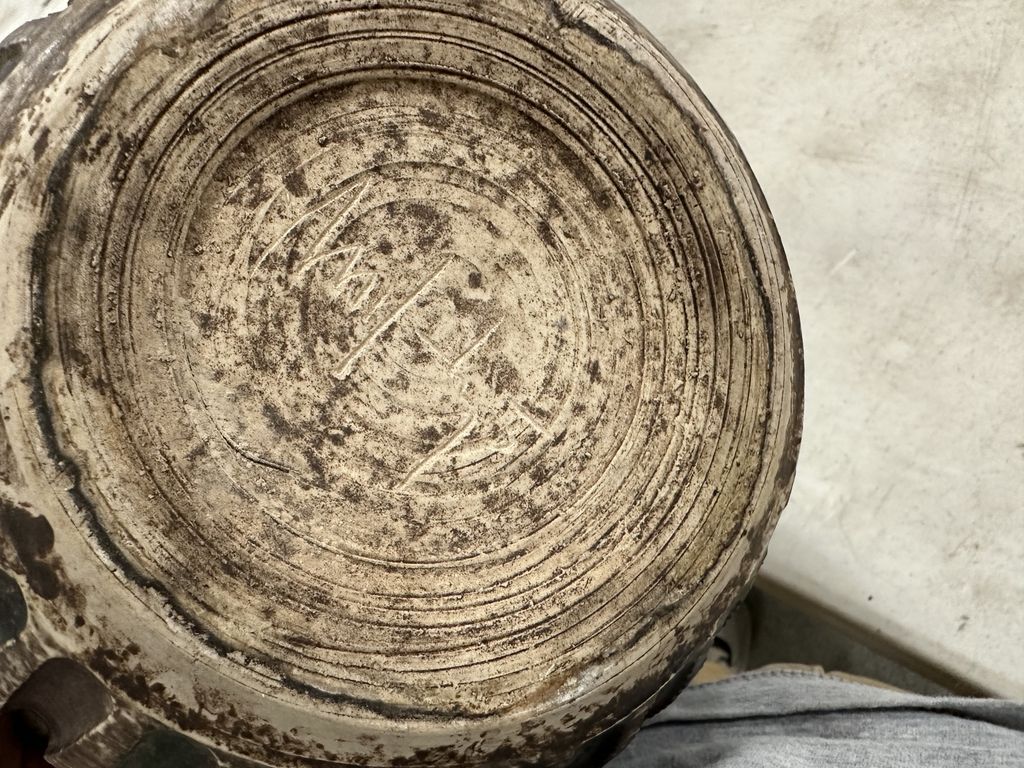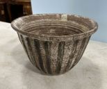Vintage McCarty Nutmeg Planter, signed, river mark, 7"h., 11"dia, Location Front Left Shelves Vintage McCarty Nutmeg Planter, signed, river mark, 7"h., 11"dia, Location Front Left Shelves