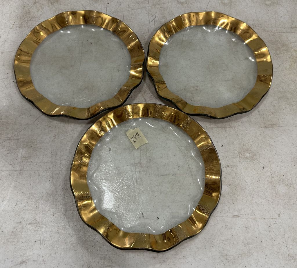 3 Annie Glass 36/39 Roman Ruffled Plates, 9 1/2"dia, Location Front Left Shelves 3 Annie Glass 36/39 Roman Ruffled Plates, 9 1/2"dia, Location Front Left Shelves